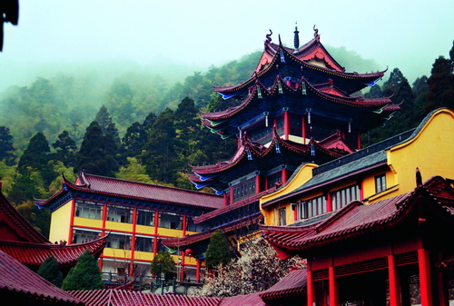 Затерянный в горах сказочный «дворец со скатертью-самобранкой», казалось, должен был раствориться за нашими спинами, стоит лишь выйти из ворот. Однако, даже отойдя от монастыря на довольно приличное расстояние, еще долго можно было услышать распеваемую монахами мантру «Амитофо». От монастыря можно пойти по опасным тропам вглубь гор, а можно спуститься вниз, к подножию, по общей лестнице, любуясь по пути водопадами и гигантскими деревьями. Мы выбрали второе.