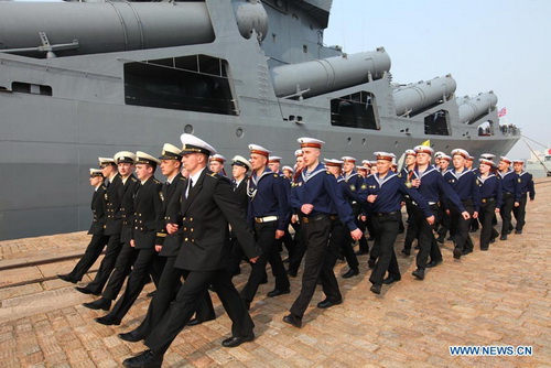 В честь 63-летия создания военно-морских сил НОАК 23 апреля прошел "день открытых дверей" на ракетном эсминце "Шэньян" ВМС НОАК и ракетном крейсере "Варяг" Тихоокеанского флота РФ, привлекаемых к совместным военно-морским учениям КНР и РФ "Морское взаимодействие-2012", стартовавшим 22 апреля в акватории Желтого моря у берегов города Циндао /провинция Шаньдун, Восточный Китай/.