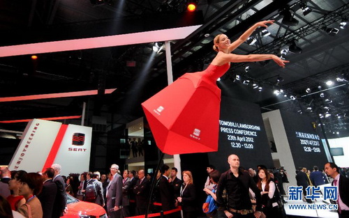 23 апреля на выставочной зоне компании Seat в рамках Международного автосалона Пекина-2012 модели при помощи гибких шестов продемонстрировали выступления в воздухе. В тот день в международном выставочном центре Китая открылась 12-я Пекинская автовыставка. («Жэньминь жибао» он-лайн)