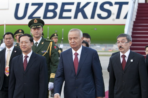 По приглашению председателя КНР Ху Цзиньтао сегодня вечером в Пекин прибыл президент Узбекистана Каримов, который начинает визит в Китай и примет участие в 12-м заседании Совета глав государств-членов Шанхайской организации сотрудничества, которое пройдет 6-7 июня.