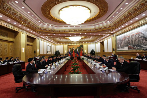 В ходе переговоров Ху Цзиньтао выразил уверенность в том, что данный визит В. Путина в Китай будет содействовать дальнейшему развитию китайско-российских отношений всеобъемлющего стратегического партнерства и взаимодействия.