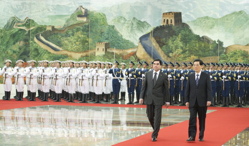 Перед началом переговоров Ху Цзиньтао устроил церемонию встречи в честь Бердымухамедова.
