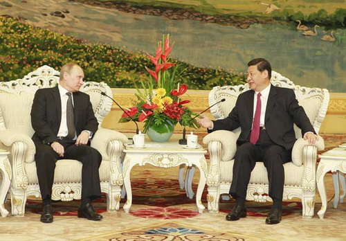 Заместитель председателя КНР Си Цзиньпин сегодня в Доме народных собраний в Пекине встретился с президентом РФ Владимиром Путиным, прибывшим в Китай с визитом и для участия в Пекинском саммите ШОС. На встрече Си Цзиньпин отметил, что китайская сторона готова приложить совместные с российской стороной усилия для выполнения выдвинутых главами двух государств новых задач, непрерывного укрепления основы для развития отношений двух стран и повышения уровня китайско-российских отношений. Он выразил надежду на то, что соответствующие ведомства двух стран будут серьезно претворять в жизнь консенсус о сотрудничестве, достигнутый руководителями двух стран, в соответствии с принципами взаимной выгоды, обоюдного выигрыша, учета взаимных озабоченностей и интересов содействовать достижению новых успехов в практическом сотрудничестве между двумя странами. Си Цзиньпин далее отметил, что в настоящее время в международной обстановке происходят беспрецедентно глубокие перемены. На данном фоне необходимо укрепление стратегического взаимодействия между Китаем и Россией в международных делах в целях защиты общих интересов и обеспечения мира, стабильности и развития на планете. В. Путин в свою очередь отметил, что российская сторона придает серьезное значение развитию отношений с Китаем и преисполнена уверенности в развитии российско-китайских отношений. В нынешней мировой ситуации Россия и Китай должны дальше активизировать прагматичное сотрудничество в различных областях в целях содействия обеспечению мира, стабильности и развития на планете.(Синьхуа)