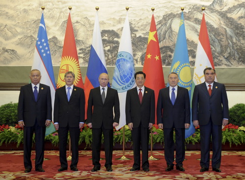Сегодня в Пекине состоялись переговоры в узком кругу в рамках 12-го заседания Совета глав государств-членов Шанхайской организации сотрудничества. Перед началом переговоров главы государств-членов ШОС коллективно сфотографировались. (Синьхуа)