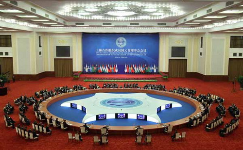 ![]() Сегодня в первой половине дня в Доме народных собраний начались переговоры в широком составе на 12-м заседании Совета глав государств-членов Шанхайской организации сотрудничества. Председатель КНР Ху Цзиньтао в качестве главы государства-председателя ведет заседание и выступает с речью. (Синьхуа)