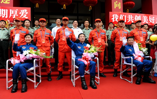 Экипаж "Шэньчжоу-9"вернулся в Пекин