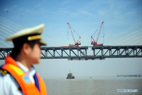 Стыковка главных стальных конструкций моста Хуанган через Янцзы