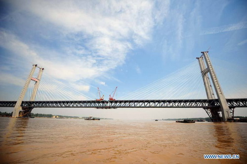 ![]() 16 сентября осуществлена стыковка главных стальных конструкций моста Хуанган через Янцзы.Этот автомобильный и железнодорожный мост является самым протяженным в мире среди сооружений подобного типа. (Синьхуа)