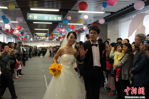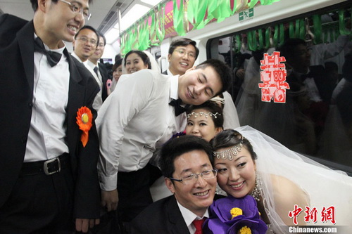 ![]() 16 сентября,в первой половине дня в китайском городе Сиане прошла коллективная свадьба "Дорога в счастье". Это торжество стало одним из главных мероприятий, посвященных первой годовщине сдачи в эксплуатацию ветки №2 метро города Сианя. Свадебная церемония совместила в себе "зеленую моду", защиту окружающей среды и культуру метрополитена, что позволило десяти парам новобрачных испытать на себе этот новый вид романтизма.( <<Жэньминь жибао>> он-лайн)