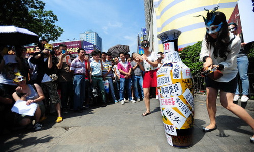 Студентки одного из вузов г.Ухань разбили вазу в знак протеста против бума конкурсов красоты