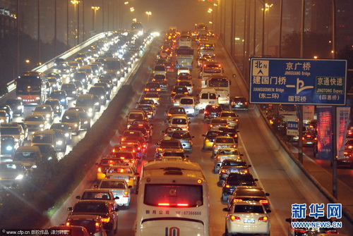 ![]() Вечером 25 сентября в Пекине образовались сильные пробки в связи с приближением праздничных выходных дней и дождем. Индекс пробок в центральном районе города составил 9,8, что стало самым высоким показателем с начала 2012 года.