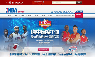 8 октября лига НБА в Китае заявила, что официальный магазин НБА теперь зарегистрирован на самой большой розничной платформе в интернете в Китае "Тяньмао" (Магазин Таобао). Это первый электронный магазин среди мировых профессиональных объединенных состязаний в "Тяньмао". Сотрудники НБА в Китае заявили, что это действие отражает политику маркетинга, выдвигаемую главным исполнительным директором НБА в Китае, то есть суть розничной продажи -- это сбыт в Интернете.