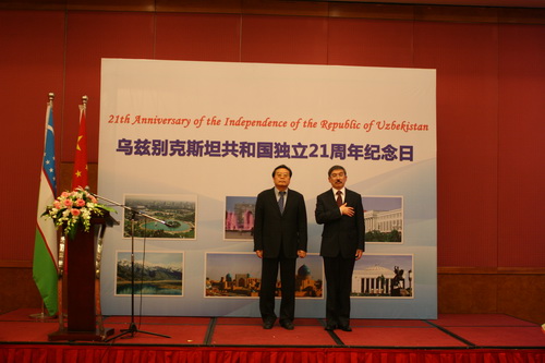 17 октября в Пекине состоялся прием, посвященный 21-й годовщине независимости Республики Узбекистана. На приеме приняли участие посол Узбекистана в Китае Данияр Курбанов, заместитель министра иностранных дел КНР Чэн Гопин, главы аккредитованных в Китае дипломатических миссий, а также около ста представителей различных кругов Китая.