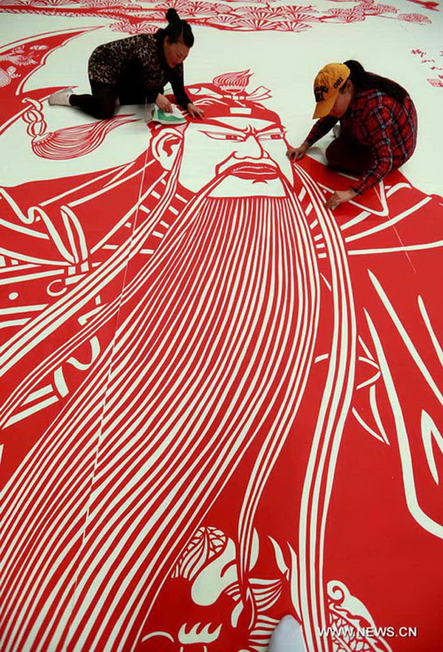 Грандиозная вырезанная из бумаги картина выставлена в Северном Китае