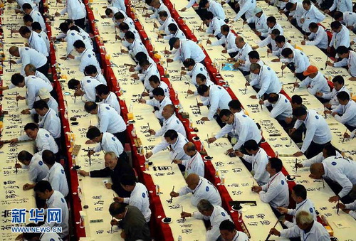![]() Недавно в городе Кайфэн провинции Хэнань прошло мероприятие, в ходе которого тысяча человек коллективно написали китайский иероглиф "Цзюй" (хризантема) каллиграфическим способом. Были приглашены тысяча профессионалов и любителей каллиграфии, чтобы их произведения в конце концов были соединены в один длинный свиток. Как известно, хризантема в городе Кайфэн является цветком национальной эмблемы. Данное мероприятие представляет собой одну из важных программ 30-го фестиваля хризантем в Кайфэне.( <<Жэньминь жибао>> он-лайн)