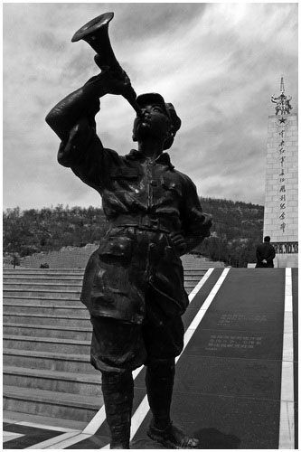 ![]() В октябре 1934 г. Красная армия начала Великий поход и, преследуя отступающего противника, в октябре 1935 г. триумфально вступила в местечко Уци. На фото: мемориал в честь победоносного Великого похода Красной армии и памятник героическому бойцу Красной армии.