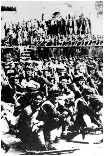 ![]() Мемориальный музей 1-го съезда КПК в Шанхае. 23 июля 1921 г. именно здесь состоялся 1-й съезд КПК. ![]() В ноябре 1931 г. в городе Жуйцзинь провинции Цзянси состоялся 1-й Всекитайский съезд Советов, Мао Цзэдун был избран Председателем временного Центрального правительства. На фото: население Жуйцзиня, командиры и бойцы Красной армии отмечают проведение съезда.