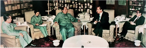 В феврале 1972 г. по приглашению Чжоу Эньлая президент США Ричард Никсон посетил Китай. На фото: Мао Цзэдун и Никсон. После встречи стороны подписали «Совместное Китайско-Американское коммюнике», что символизировало начало нормализации китайско-американских отношений.