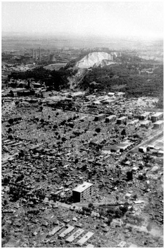8 лет спустя на развалинах поднялся новый город; китайцы специально сохранили не восстановленными 10 мест, превратив их в мемориальный музей Таншаньского землетрясения. На фото: фотографии одного и того же места до и после землетрясения (последняя снята 6 июня 1984 г.).