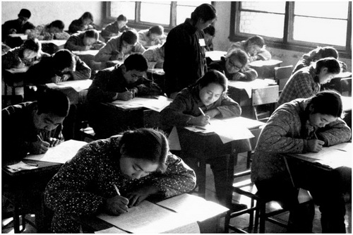В декабре 1977 г. была восстановлена прежняя экзаменационная система приема в вузы, которая до этого не действовала 10 лет, виной чему послужила «культурная революция». В Китае вновь начали испытывать уважение к знанию и кадрам. На фото: одно из мест для экзаменов, оборудованное в пекинской средней школе № 150.