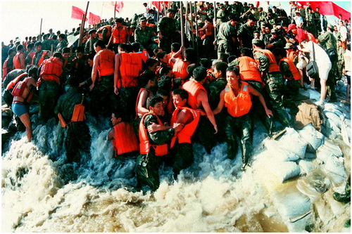 Лето 1998 г., серьезное наводнение в Китае. На фото: солдаты НОАК в борьбе с наводнением.