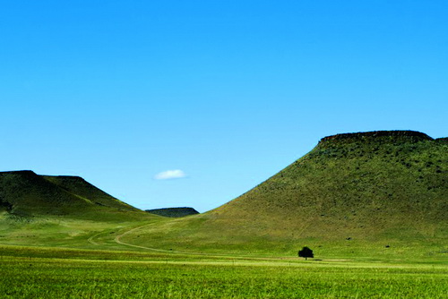 Гора Пиндиншань представляет собой потухший вулкан. Она расположена в обширной степи, раскинувшейся в окрестностях города Чифэн (АР Внутренняя Монголия). Если смотреть издалека, то вершина горы кажется ровной и гладкой как поверхность стола, но при более близком рассмотрении у подножия и на склонах горы нетрудно заметить куски вулканического туфа – плотной горной породы, образовавшейся из твердых продуктов вулканических извержений (пепла, песка и т.д.). Многие приезжают сюда, чтобы полюбоваться восходом и закатом солнца, поэтому у подножия Пиндиншань можно увидеть немало туристических палаток.