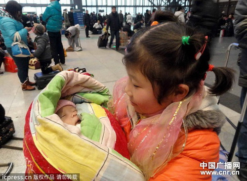 ![]() С приближением праздника Весны, дети, живущие на чужбине вместе с родителями, подобно перелетным птицам возвращаются домой, чтобы отметить Новый год. Хотя дорога приносит усталость, они переносят ее легче, потому что находятся рядом с родителями. (КитайскийинформационныйИнтернет-центр)