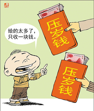 Говоря об "урожае" сына в этом году, господин Вэнь, который работает в одной из финансовых структур, подшучивая сказал, что "при грубом подсчете, пятилетний сын "заработал" более 20 тысяч юаней, примерно столько же, сколько я получил премию".
