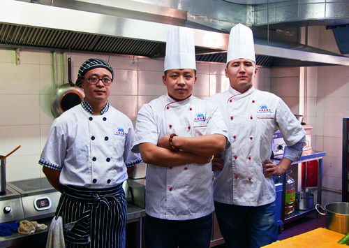 Мы с ним работаем очень слаженно. Наверное, потому, что оба строго следуем рецептам. Китайских помощников, правда, пришлось многому научить. Например, временным стандартам: что на закуски должно уходить не более 10-15 минут, на горячие блюда – 30-40 минут. А то случалось, что суп «опаздывал». (В Китае, в отличие от России, суп в ресторанах принято подавать в последнюю очередь.)