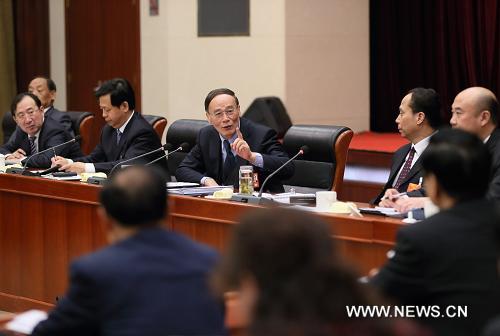 9 марта -- Член Постоянного комитета Политбюро Центрального комитета Коммунистической партии Китая Ван Цишань сегодня в рамках проходящей в Пекине первой сессии Всекитайского собрания народных представителей /ВСНП/ 12-го созыва принял участие в групповой дискуссии с депутатами от провинции Хэйлунцзян /Северо-Восточный Китай/.