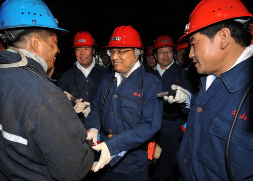 ![]() 28 июля 2008 г. Ли Кэцян навестил рабочих шахты Ташань угольной корпорации Датун в провинции Шаньси