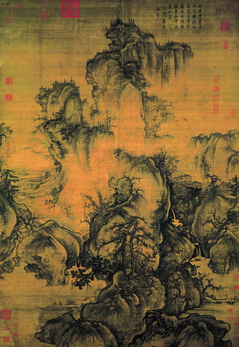 ![]() «Ранняя весна» Го Си (Южная Сун): хотя художник не следует научному принципу построения перспективного изображения, в пейзаже «шань-шуй (горы-воды)» ему удается передать величие природы и бесконечность пространства