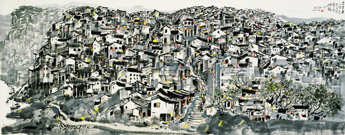 ![]() На картине У Гуаньчжуна «Старый Чунцин» город изображен с особой любовью