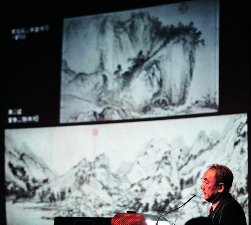 ![]() Судьба свитка «Жилище в горах Фучунь» издавна тревожила умы общественности. 22 марта, 2010 г.: специалист тайбэйского «Гугуна» рассказывает об истории картины (фото Синьхуа)