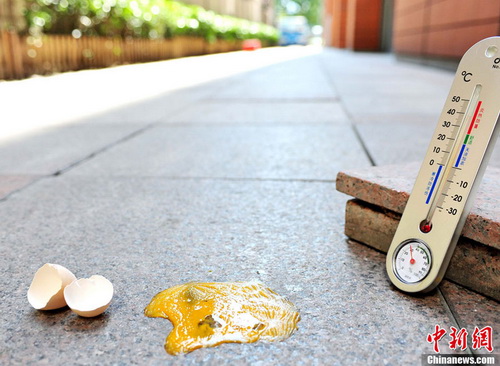 ![]() 30 июля в Шанхае поднялась жаркая волна. Под солнечными лучами земля просто раскаляется! Некоторые горожане провели эксперимент, разбив сырое яйцо на горячую землю, уже через 10 минут поверхность яйца уже начала затвердевать, а спустя 20 минут оно было уже наполовину готовым. По имеющейся информации, 30 июля - 26-ой день высокой температуры этого лета, а также и 24-ый жаркий день в июле, что побило все исторические рекорды температуры метеорологической станции Сюцзяхуэй. (<<Жэньминь жибао>> он-лайн)