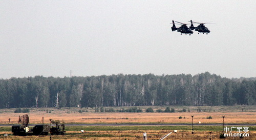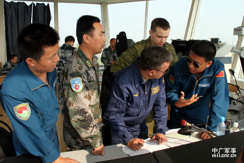 ![]() Боевая группа ВВС Китая совершила 8 полетов более чем за 1 час с тем, чтобы ознакомиться с обстановкой на мишенном поле, провести визуальную разведку и обнаружить цели штурма. После прибытия на российский аэродром Шагол 2 августа китайская сторона пригласила российских летчиков провести для китайских летчиков инструктаж по использованию аэродрома, ознакомить их с системой контроля за полетами и метеорологией, а также дать возможность осмотреть взлетно-посадочные полосы, рулежные дорожки, места стоянки самолетов и командную вышку, -- сказал только что выполнив данное полетное задание летчик первого класса, начальник первой авиационной эскадрильи одной из дивизий армейской авиации ВВС НОАК Шэньянского военного округа Ван Сяолян.
