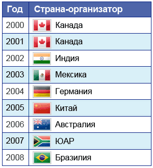 Основным форматом деятельности форума стали ежегодные встречи на уровне министров финансов и глав центральных банков. После учредительной конференции, которая состоялась 15-16 декабря 1999 года в Берлине, подобные встречи прошли в следующих странах: