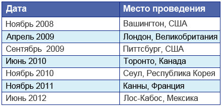 Всего состоялось семь встреч лидеров «Группы двадцати»: