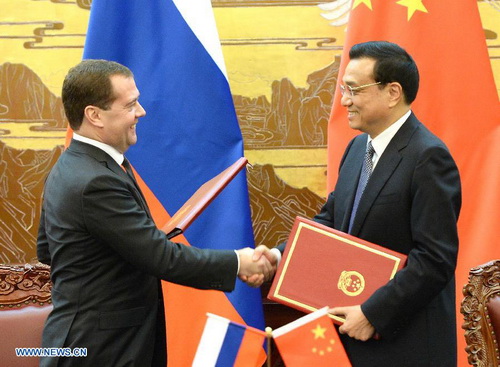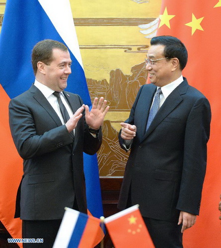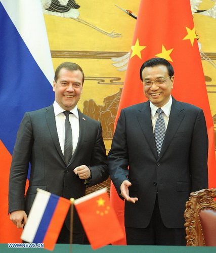 Ли Кэцян и Д. Медведев решили всесторонне углублять многоотраслевое сотрудничество и вывести на новый уровень китайско-российские всесторонние отношения стратегического взаимодействия и партнерства