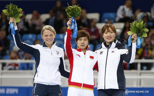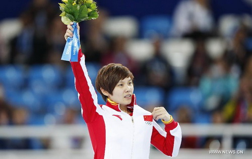 13 февраля на сочинской Олимпиаде в финальном спринтерском забеге на льду на дистанции в 500 м первую золотую медаль для китайской сборной завоевала китаянка Ли Цзяньжоу.(Синьхуа)