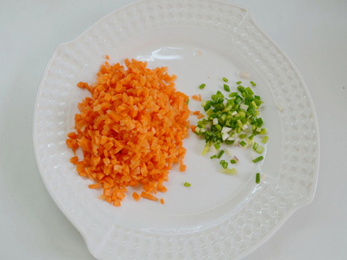 ![]() 1. Мелко нарезать морковь и лук-батун.
