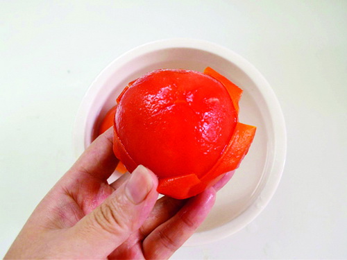 3. Теперь легко удалить кожуру помидоров начиная с верхней части.