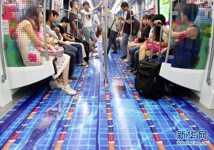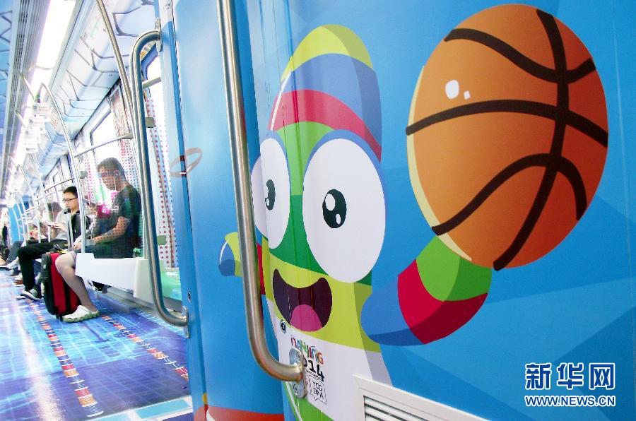 Юношеские Олимпийские игры проходят в Нанкине, по этому случаю тематические вагоны были запущены по линии метро, ведущей в аэропорт. В вагонах по видам состязаний, таким как футбол, баскетбол, плавание и т.д. были установлены «тематические полы», спортивные афиши и другое оборудование. Это позволяет пассажирам почувствовать глубокую атмосферу Юношеской Олимпиады.( russian.china.org.cn )