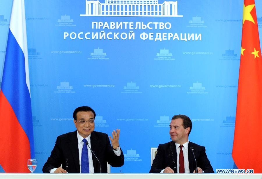 Ли Кэцян и Д. Медведев провели совместную пресс-конференцию