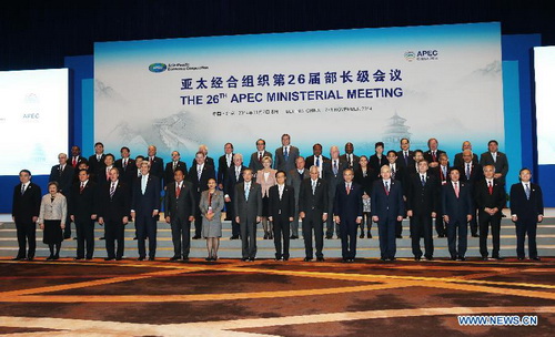 Пекин, 7 ноября -- В Пекине открылось 26-е совещание АТЭС на уровне министров, в котором участвуют министры или представители экономических субъектов АТЭС, исполнительный директор секретариата АТЭС, председатель Делового консультативного совета АТЭС, представители наблюдателей организации и специально приглашенные гости. На совещании выступили с речами министр иностранных дел КНР Ван И и министр коммерции КНР Гао Хучэн.