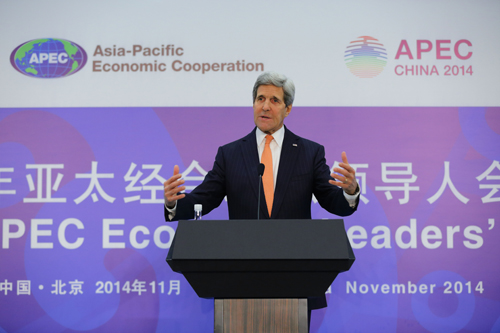 Во второй половине 8 ноября в Национальном конференц-центре Китая госсекретарь США Д. Керри провел пресс-конференцию и отметил, что США одобрили консенсус, достигнутый между Китаем и Японией о улучшении двухсторонних отношений.