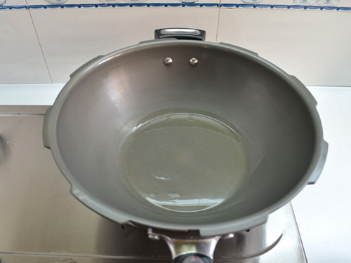 ![]() 3.Нагреть сковороду на огне и налить туда растительное масло, после того как масло нагреется убавить огонь до малого.
