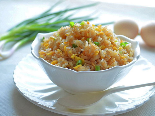 Основные ингредиенты: готовый рис – 250 г., яйца – 2 шт.