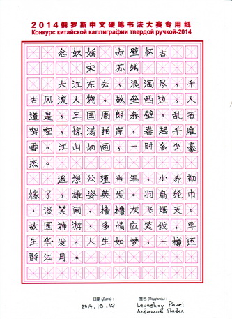 П. Левашов: Мне нравится писать иероглифы. Мне интересно, как пишут другие. Буду принимать участие в будущих конкурсах.