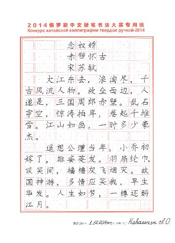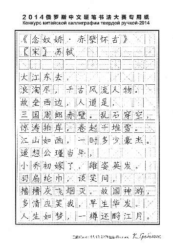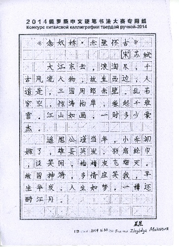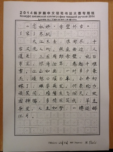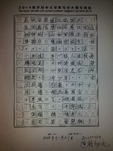 Конкурс китайской каллиграфии твердой ручкой-2014